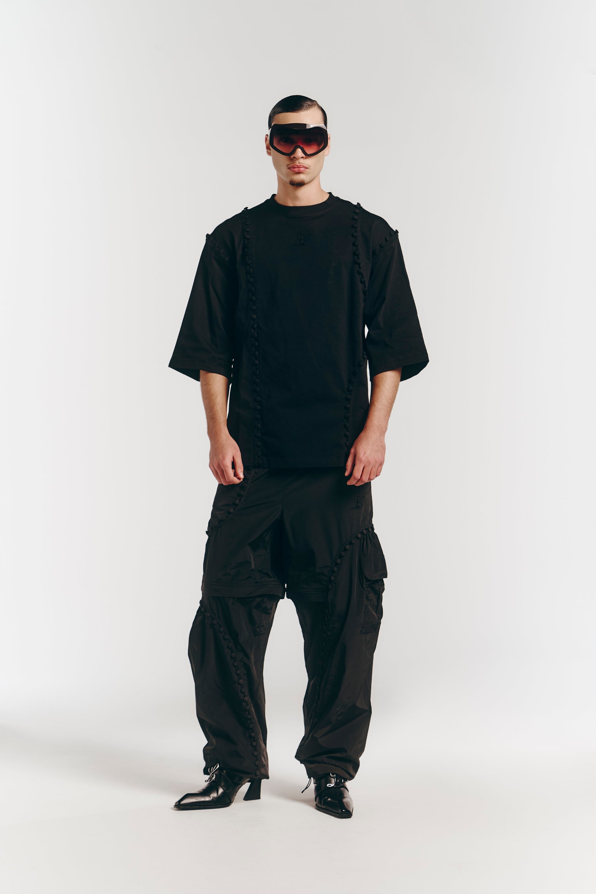 Unbutton T-Shirt in Black. A study in effortless versatility, the Unbutton T-Shirt is crafted from 100% heavyweight cotton for a structured yet comfortable feel. Fully functional buttons and an oversized silhouette allow subtle customization in fit and styling, making this short-sleeve essential perfect for layering or elevated casual wear.