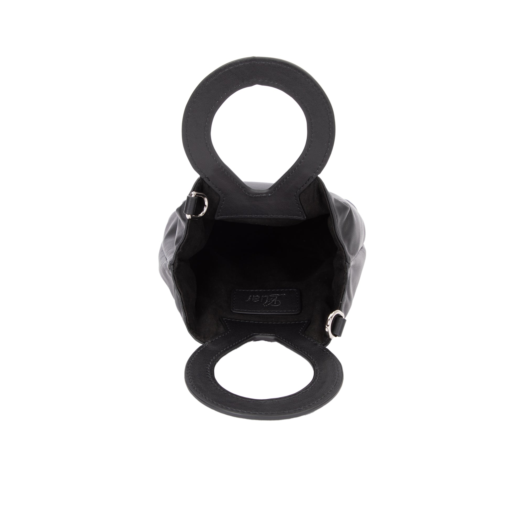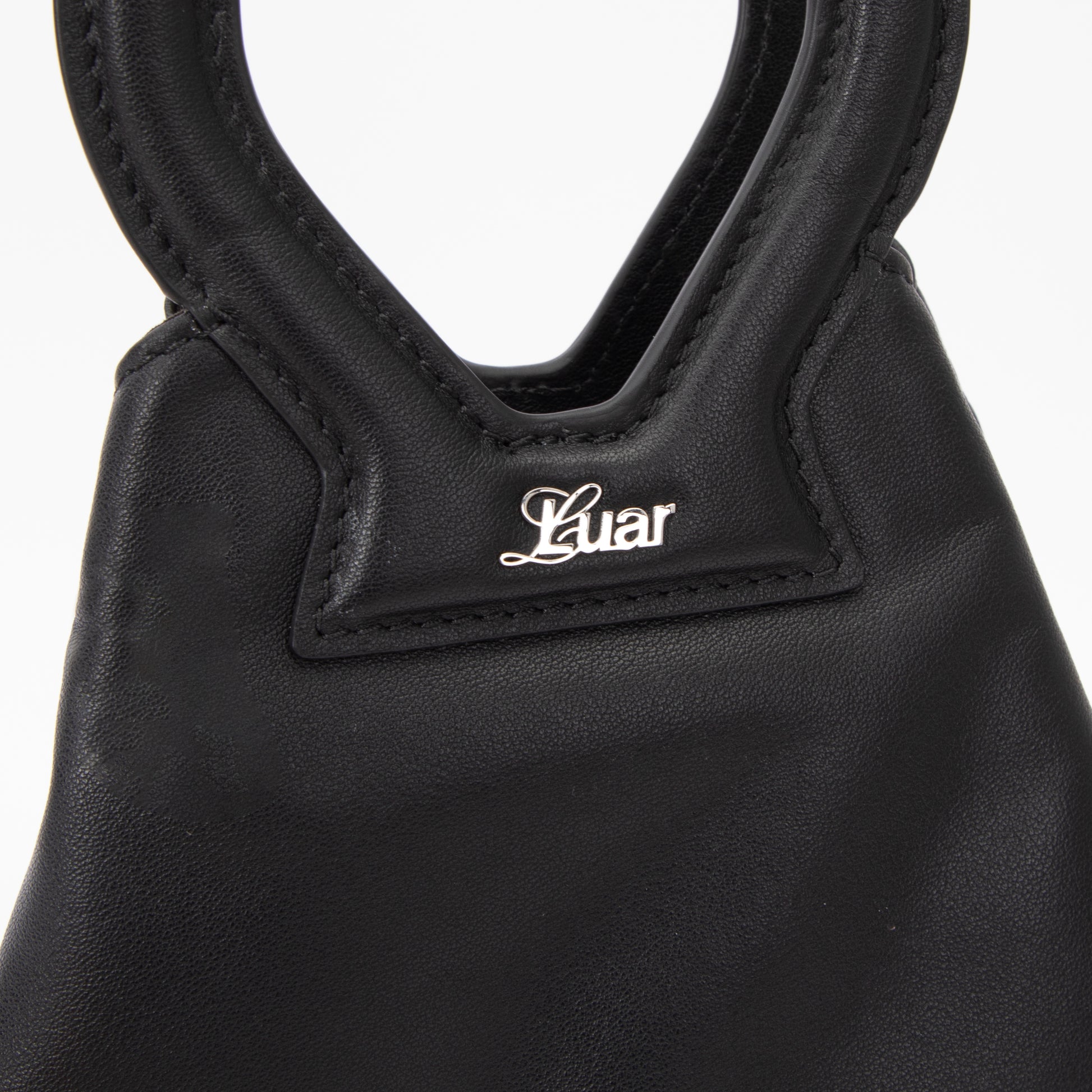 Crafted from soft leather, this miniature style features the iconic circular top handle and a slender, removable crossbody strap for effortless versatility. Its clean, architectural shape is secured with discreet magnetic closures, while subtle silver hardware and a precise LUAR logo engraving complete the sleek, sculptural finish.